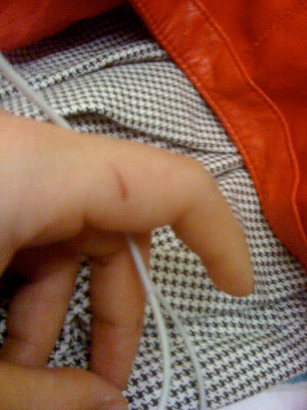 It's sort of a rite of passage to share your battle wounds during break. Mine are minor compared to some. There was a story of some student nearly chopping his entire finger off with a mandolin in another class. Down to the bone- ouch.