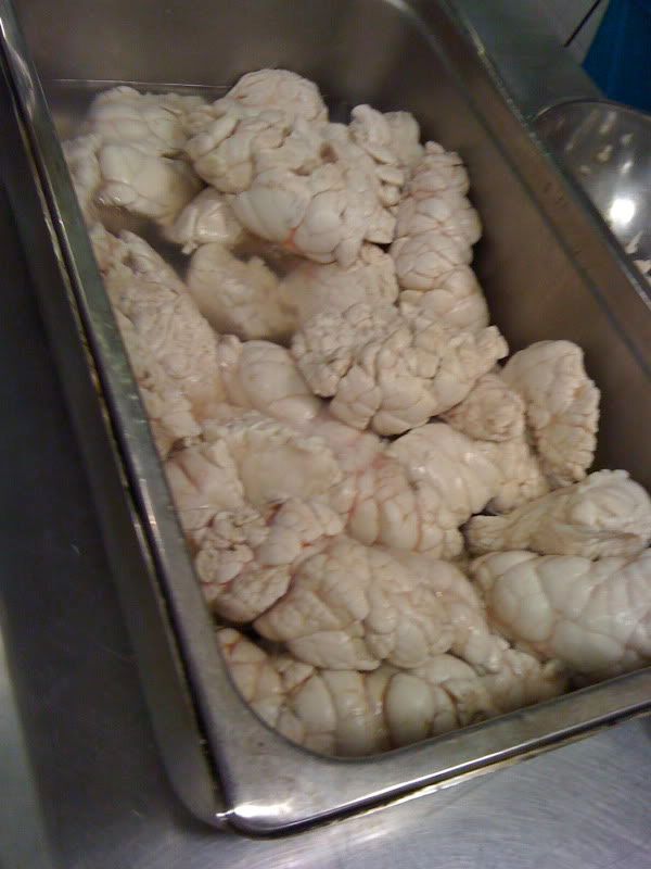 Tongues, feet, and sweetbreads, although not really organs, all fall into the organ category for cooking. I can appreciate tongue. I think it's one of those things that should be served alongside all other meats at restaurants. It's really soft and tender when cooked right, and I think just the fact that it's tongue, grosses people out. I first had cow tongue prepared by Omar's grandma a couple of years ago. His family watched expectantly as I tried it, thinking I'd gag and wonder why they'd eat such a thing. I actually really enjoyed it and now anytime I see it on a menu, I get it. Especially in tacos! Mm!