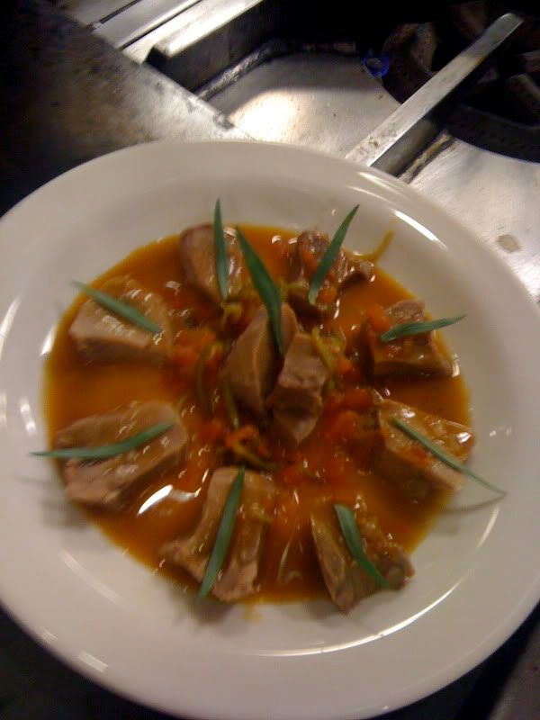 I'm not a big fan of liver, I realized. It has that weird aftertaste that makes me want to vomit just thinking about it. And kidneys, too, have that livery flavor. I thought I was an adventurous enough eater that I could appreciate things like liver and kidneys, but no. I'd be fine if I never ate them again. Chef Phil wagered that you probably have to grow up eating the stuff to like it. He might be right. The only liver I ever had growing up was from the bag of gizzards my dad used to throw on the grill when he barbecued chicken. And those were just small enough and soaked with marinade that I never got the sting of that liver flavor.